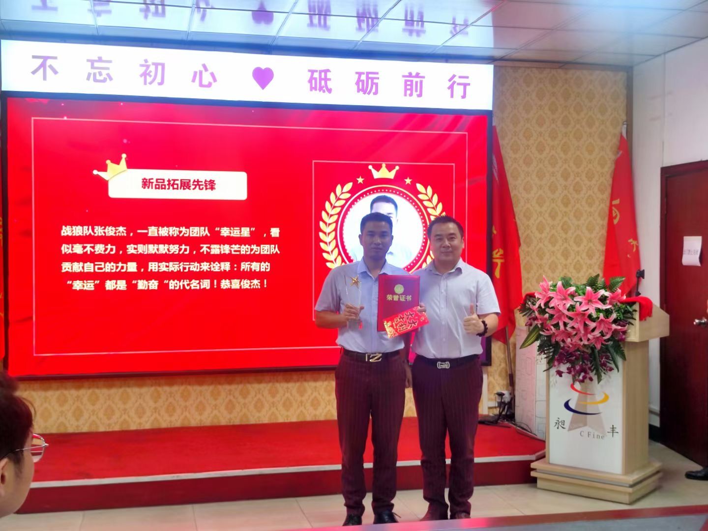 祝賀昶豐市場(chǎng)部小伙伴獲得“拓品先鋒獎(jiǎng)”